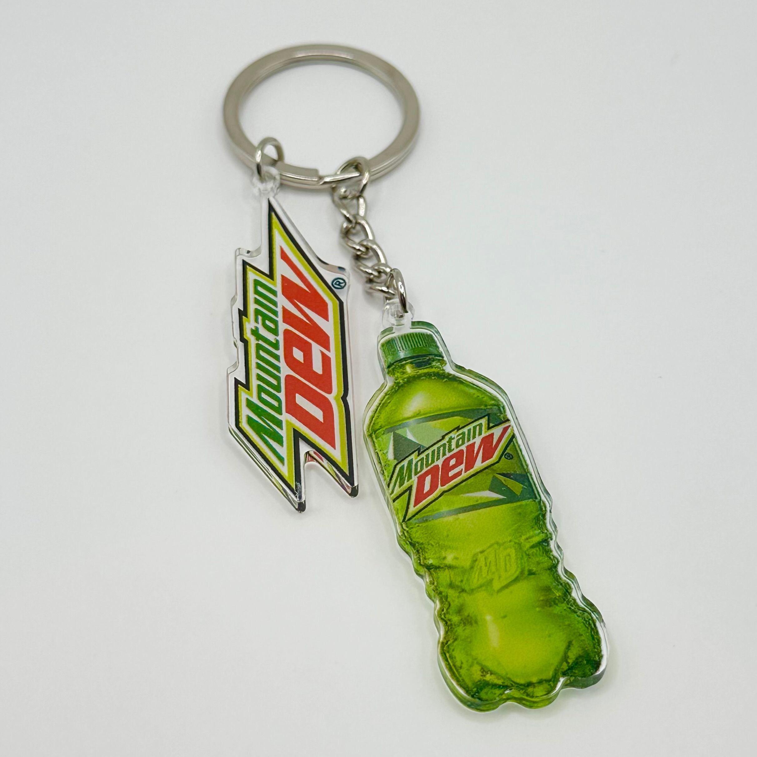 Mountain Dew ロゴ&ボトル アクリルキーホルダーで、あなたのライフスタイルを一新しませんか!このキーホルダーは、人気のソフトドリンク「Mountain Dew」のロゴとボトルデザインを取り入れており、遊び心溢れるアイテムです。バッグや鍵につけるだけで、カジュアルなスタイルに個性をプラスします。